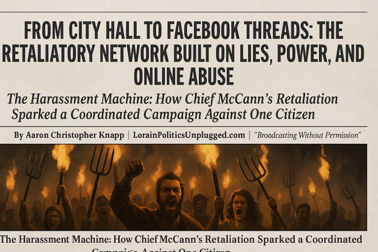 The Harassment Machine: How Chief McCann’s Retaliation Sparked a Coordinated Campaign Against One Citizen By Aaron Christopher Knapp | LorainPoliticsUnplugged.com...