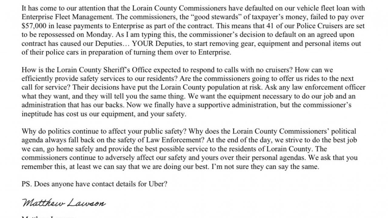 What the Threatened Repossession of 41 Sheriff’s Cruisers Reveals About Governance, Accountability, and Public Safety in Lorain County By Aaron...