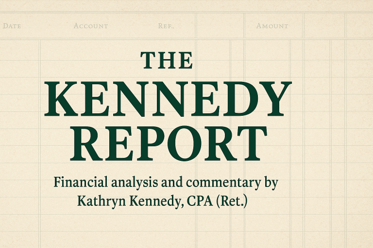 Financial analysis and commentary by Kathryn Kennedy, CPA (Ret.)