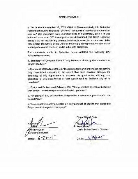 The investigation concluded McCann had violated at least three Lorain Police Department policies: