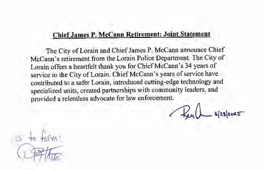 City of Lorain Announces Retirement of Police Chief James P. McCann Following Disciplinary Findings