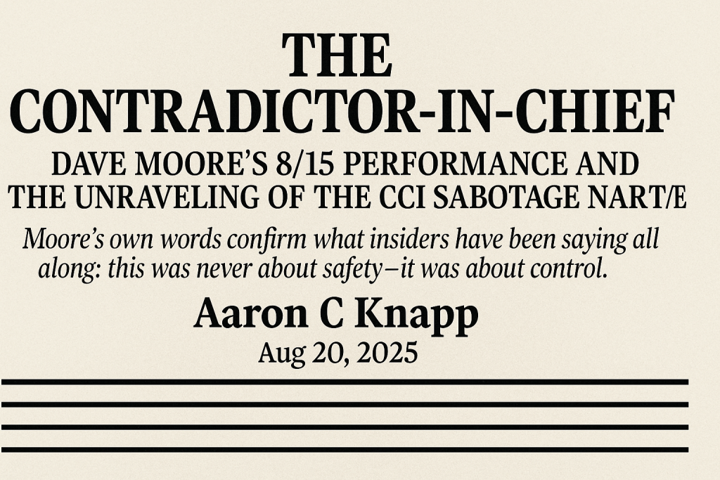 The Contradictor-in-Chief: Dave Moore’s 8/15 Performance and the Unraveling of the CCI Sabotage Narrative
