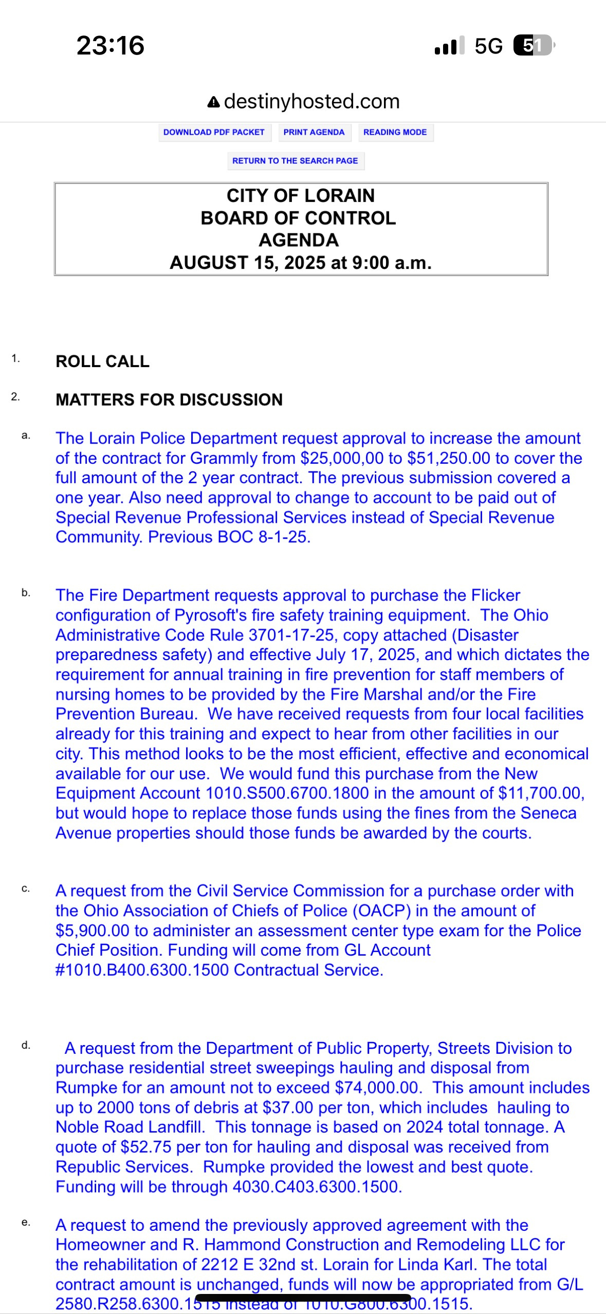 Lorain’s doubling of this contract—after the original $25,000 request was not approved—comes at a time when the city is widely regarded as being in budget crisis mode, struggling with limited resources for critical services.