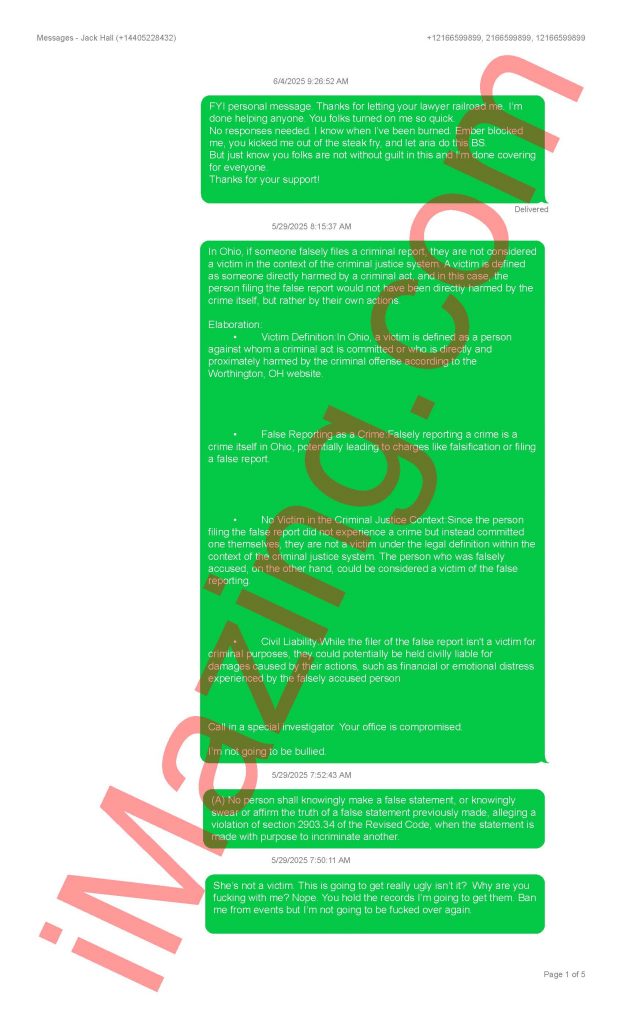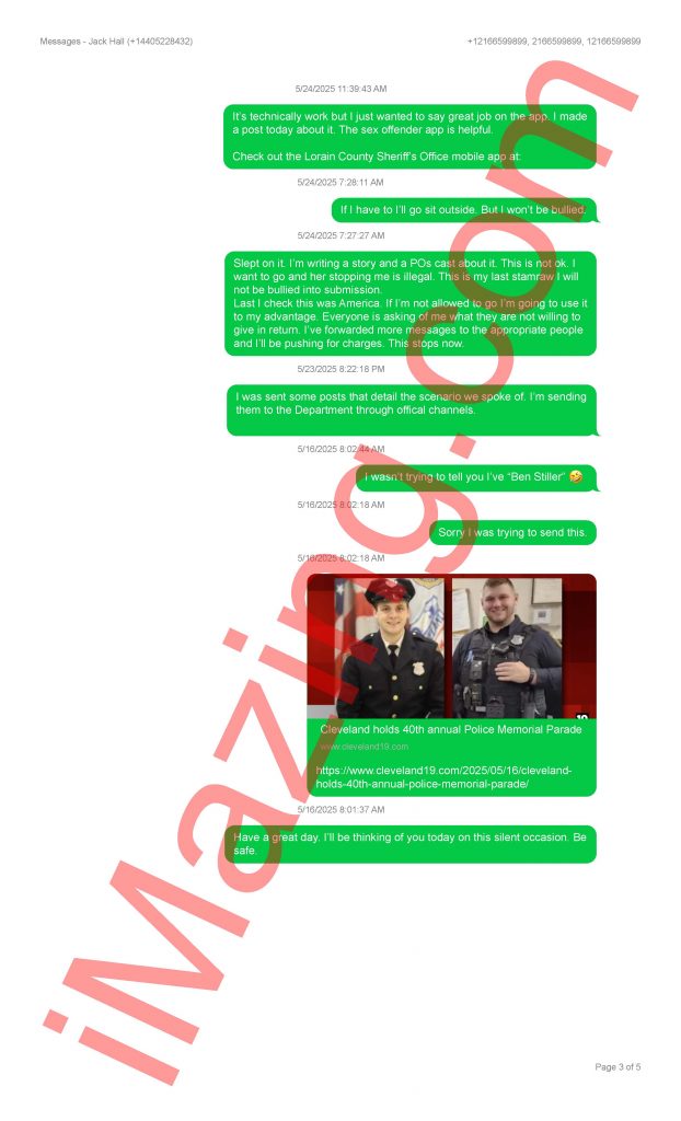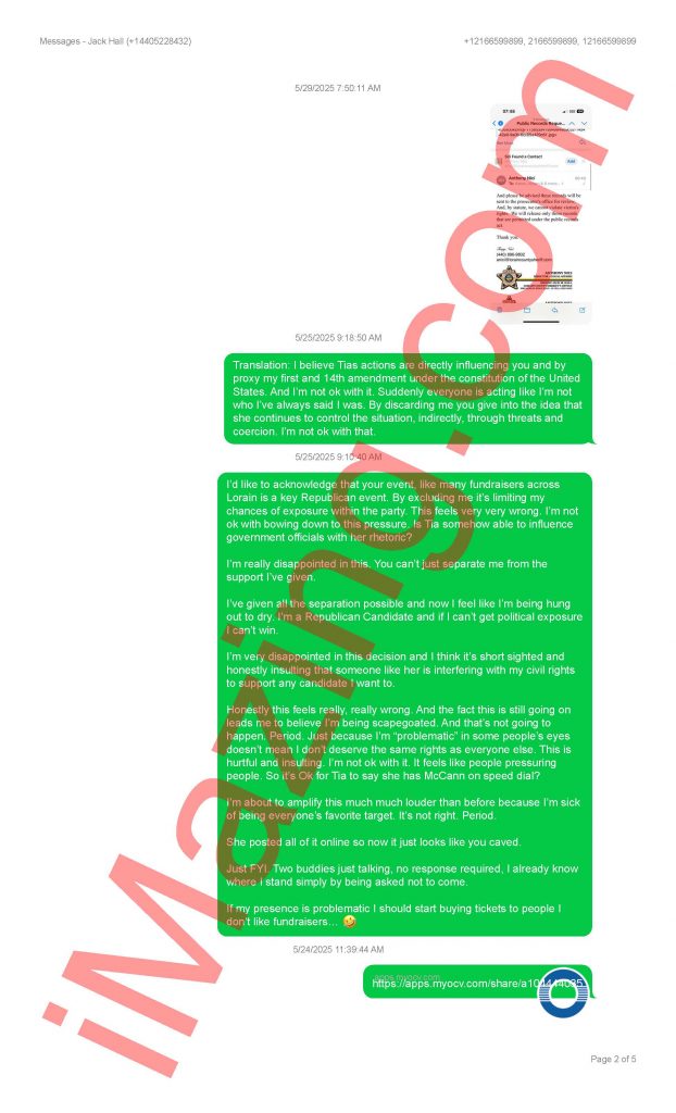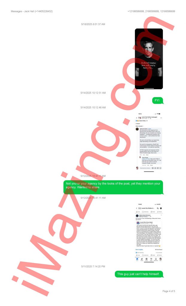 The documentary record of text messages involving Jack Hall, Lorain County Sheriff, demonstrates that he was not an arm’s length official detached from the controversy. The messages show political entanglement, personal reaction, and direct engagement with partisan disputes and retaliatory dynamics.